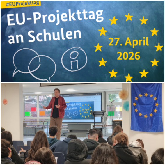 Zum jährlich stattfindende EU-Projekttag konnten wir dieses Jahr den Politiker Rasmus Andresen vom „Bündnis 90/Die Grünen“ an unserer Schule begrüßen. Herr Andresen ist Mitglied des Europäischen Parlaments und stellte sich und seine Arbeit als Politiker vor. Anschließend kam es zu einem anregenden Austausch mit unseren Schüler:innen der Klassen 8 bis 11, die interessierte Fragen zur Arbeit von Herrn Andresen und zu seinen bisherigen Erfolgen sowie weiteren Zielen in seiner Arbeit im Europäischen Parlament stellten. Herr Andresen antwortete sehr ausführlich und schülernah auf diese laut ihm sehr spannenden Fragen. Wir danken ihm für diese interessanten Einblicke.